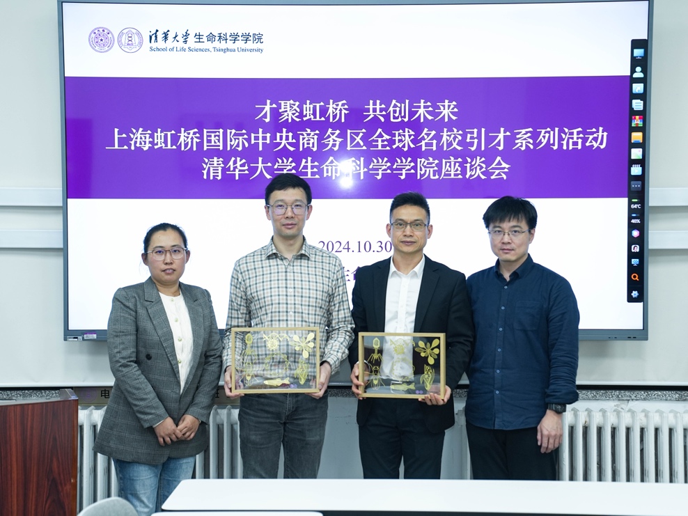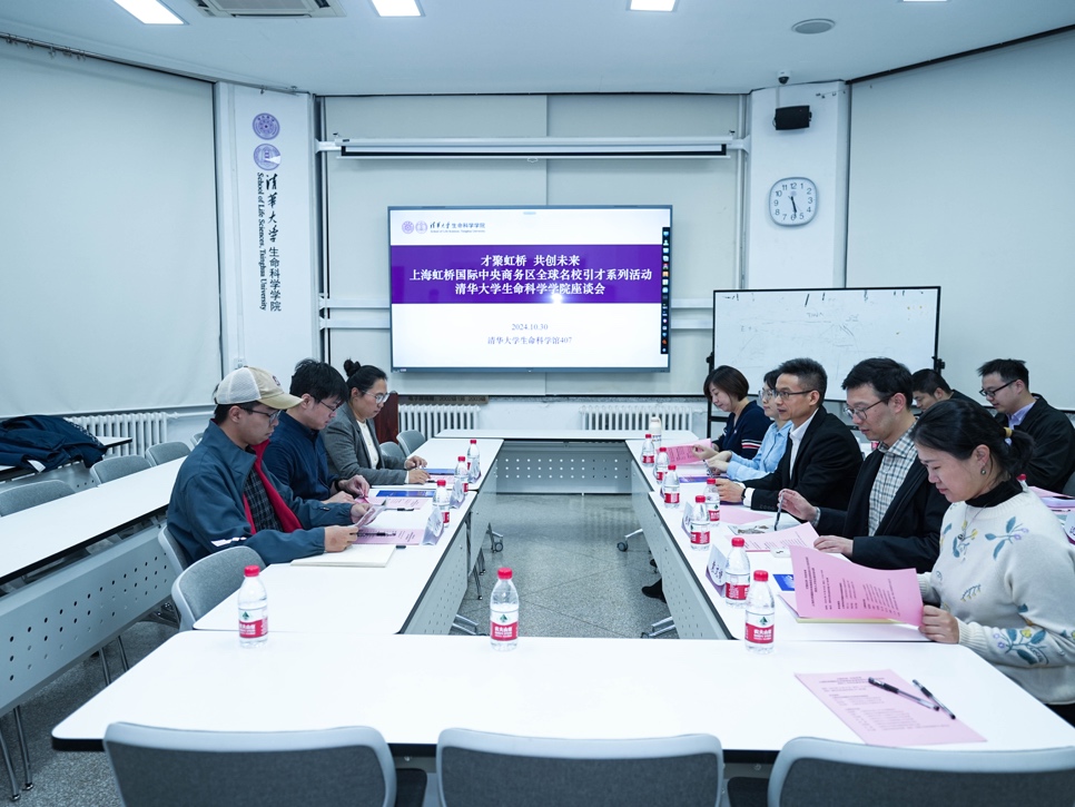 晚上,虹桥国际中央商务区管委会公共服务处周小山副处长和长宁区人才工作局赵君霖副局长带队,区委组织部、区人才服务中心、程家桥街道、新泾镇及三家生命医药知名企业等相关工作人员前往清华大学生命科学学院举行校企交流座谈,生命科学学院党委副书记李鹏、就业工作主管董园、就业助理宋佶岭出席本次座谈会。李鹏详细介绍了生命科学学院毕业生情况,周小山和赵君霖分别介绍了虹桥国际中央商务区和长宁区相关情况,双方就学生就业意愿、就业环境、校企深化合作等方面进行深入交流,期待鼓励未来生命学院毕业生到虹桥、到长宁干事创业。